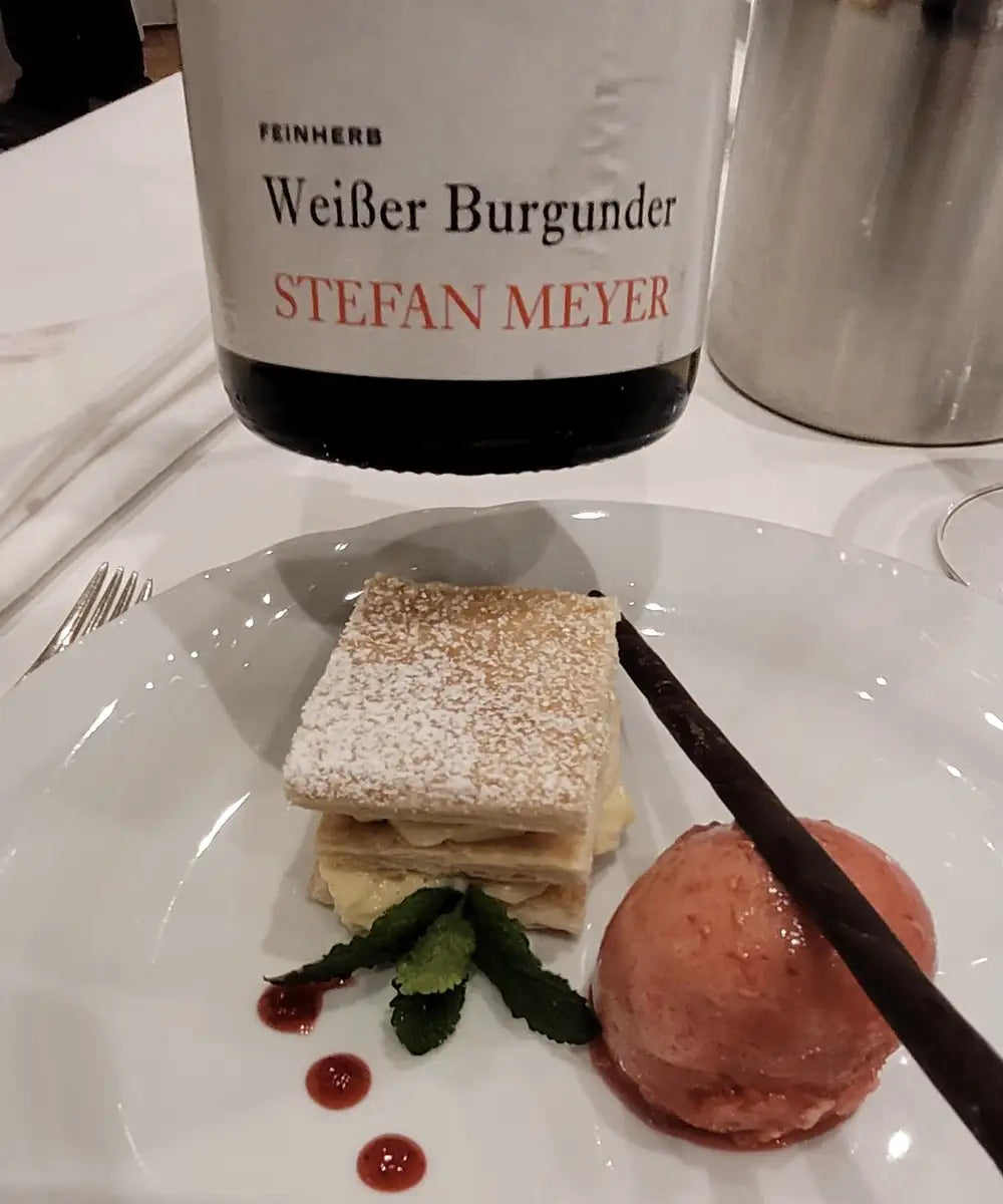Die Weine, die Stefan Meyer heute macht, nachdem er den Betrieb seines Vaters komplett umgekrempelt hat, sind wirklich beeindruckend. Die Auswirkung der Umstellung, erst auf Bio und dann auf Demeter, zeigt sich bereits jetzt im Ergebnis mit den tiefsinnigen Weinen und deren ausgewogener Harmonie. Der Weißburgunder feinherb stammt aus seiner Traditionslinie, welche den unbekümmerten fruchtig-saftigen Trinkgenuss in den Vordergrund stellt. Die Trauben für diesen Gutswein stammen aus der direkten Umgebung des Weingutes. Vergoren werden die Trauben im Edelstahl bei kühlen Temperaturen, um die primären Fruchtaromen zu fördern. Bereits nach kurzer Reifezeit, kann dieser feinherbe also halbtrockene Weißwein genossen werden.